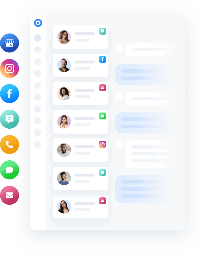 Your business can’t afford to let leads slip through the cracks just because they contacted you on a different platform. With our unified inbox, you can view and respond to messages from Facebook, Instagram, Google My Business, webchat, SMS, email, and phone — all in one app.